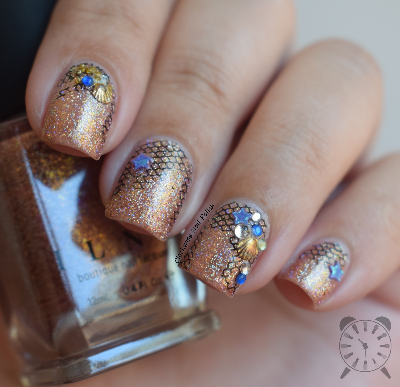 E por falar em desejo, o meu amor por rosas parece interminável no que concerne a placas de carimbo.. desta vez encontrei-as na placa de carimbo B. Loves Plates B.02 Flower Power. Por cima do verniz Kinetics Senseless Desire apliquei um pouco de glitter dourado e carimbei as rosas com o verniz de carimbo MoYou London Black Knight.
