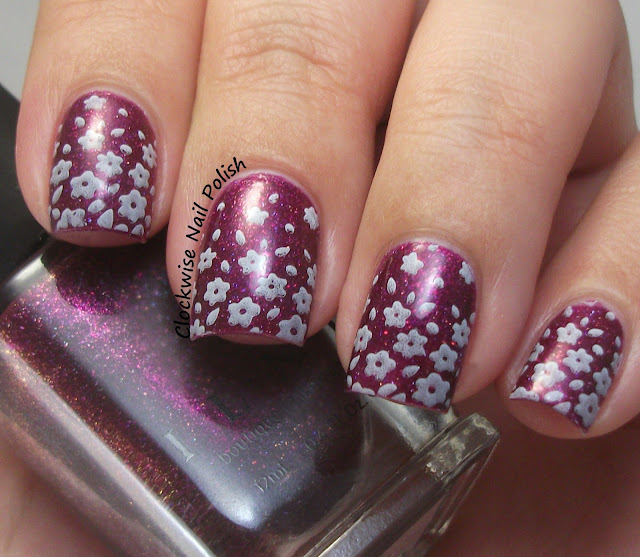 I honestly didn't have much time for Holiday nail arts this year, but I had to do something for this weekend. For the base I picked Purple Professional 49 (such a sweet color!). Then I stamped the design from Curali 013 stamping plate with BP YaQinAn Pink, DRK Nails Marrom Metálico and MdU Spring Green polishes.
