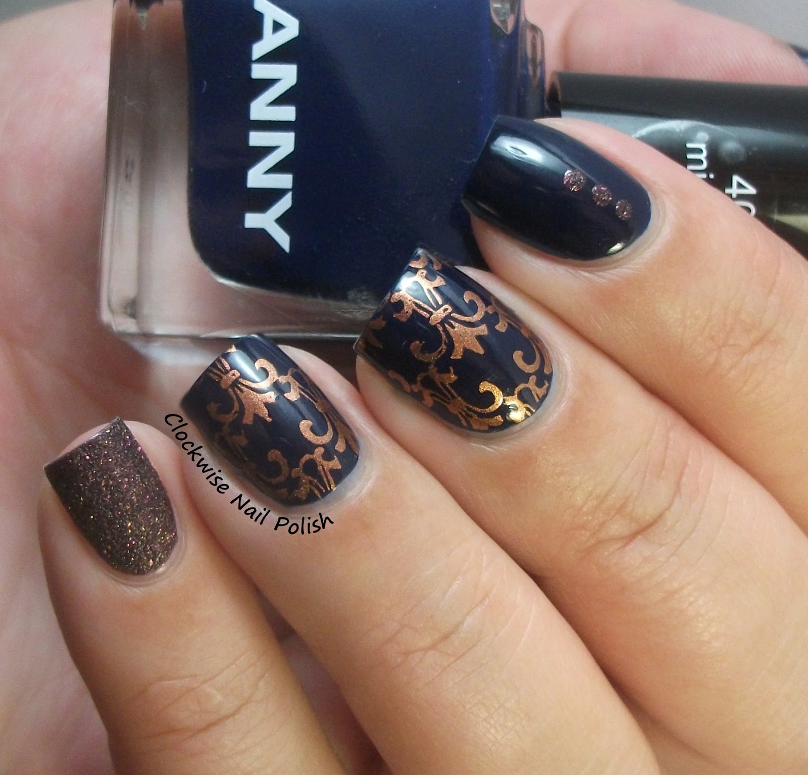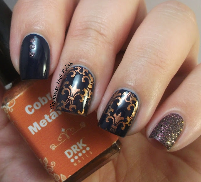 Fiz uma nail art mix n match com o Miss Perfect. Basicamente fiz dois adesivos de carimbo feitos a partir da placa Apipila Super Placa C e carimbado com o verniz MdU Peach. Depois apliquei-os sobre o verniz piCture pOlish Cherish :)