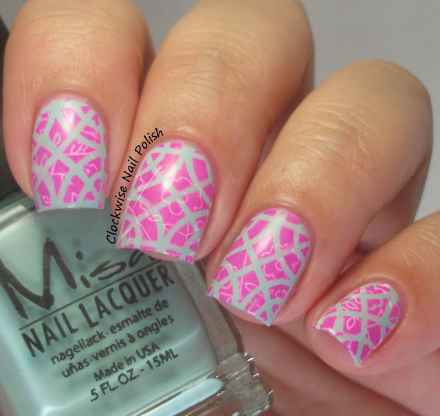 What I really, really like in BP-77 plate is... everything! I love how trendy this plate is! I created a nail art with stamping decals using a few of the designs and white, black, grey and gold colors :D The base is Golden Rose WOW 67, a clear grey polish. I like it a lot!