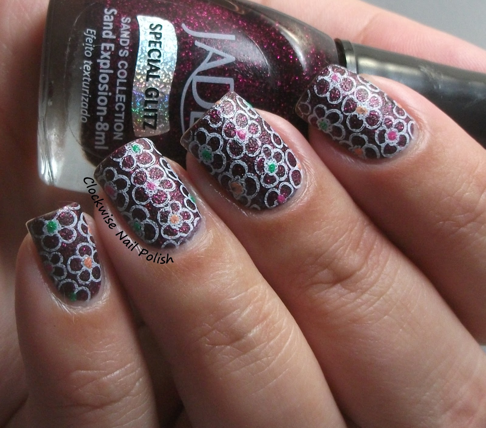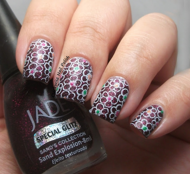 The darkest shade of the box is Andreia Fusion Color H18. For the nail art, I stamped the pattern from FUN WON plate with Essie Nothing Else Metals. I finished with a cotat of Mollon Pro Top Coat Matt.