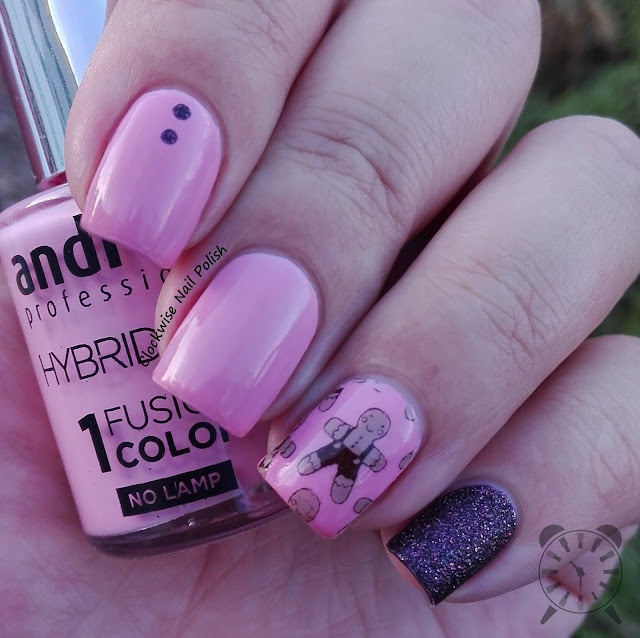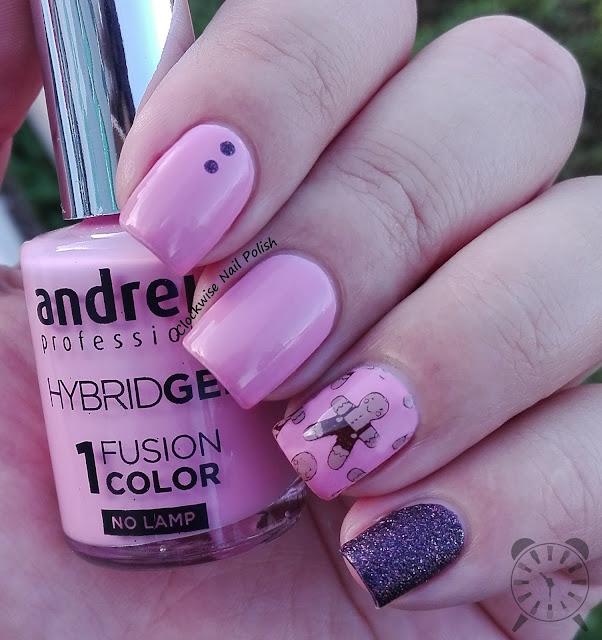 Next I bring you Andreia Fusion Color H14 which a medium and quite lovely shade of pink. in the ring finger I applied lace foil.